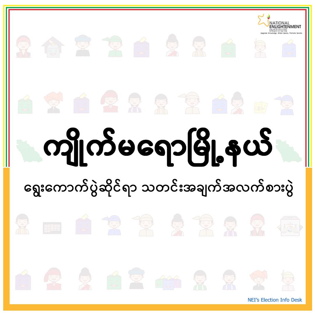 အစရှိတဲ့အရာတွေကို NEI’s Election Info Desk Mon State Project မှ စုစည်းဖော်ပြထားပါသည်။