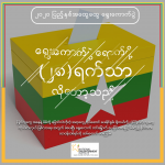 ပြည်သူတွေ အနေနဲ့ မိမိတို့ ပြောင်းလဲလိုတဲ့ အရာတွေ လုပ်ဆောင် ပေးနိုင်စွမ်း ရှိတယ်လို့ ယုံကြည်တဲ့ သူတွေ ကိုယ်စားလှယ် ဖြစ်လာရေး အတွက် မဲပေးပြီး ရွေးကောက် တင်မြှောက် ပေးခြင်းအားဖြင့် မိမိတို့ရဲ့ နိုင်ငံသား တာဝန်တစ်ရပ်ကို ထမ်းဆောင် ပေးကြပါ။